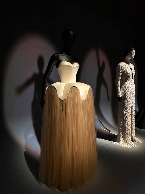 But the exhibition is not about Elsa, it’s about the brand, and it looks like it’s thriving since its acquisition in 2006. Pretty much all the rooms are about Daniel Roseberry's genius and their connection too. In the last room, runways, red carpets, and award ceremonies, all displayed with lighting that throws completely different silhouettes onto the wall behind them. The dress is one thing, its shadow another. Ariana Grande’s Oscars gown 2025, Dua Lipa’s black and gold Skeleton dress for the Golden Globes 2024, all the bangers. Against Elsa’s archive, tbh, Roseberry reads as genuinely futuristic. And honestly — he wins.